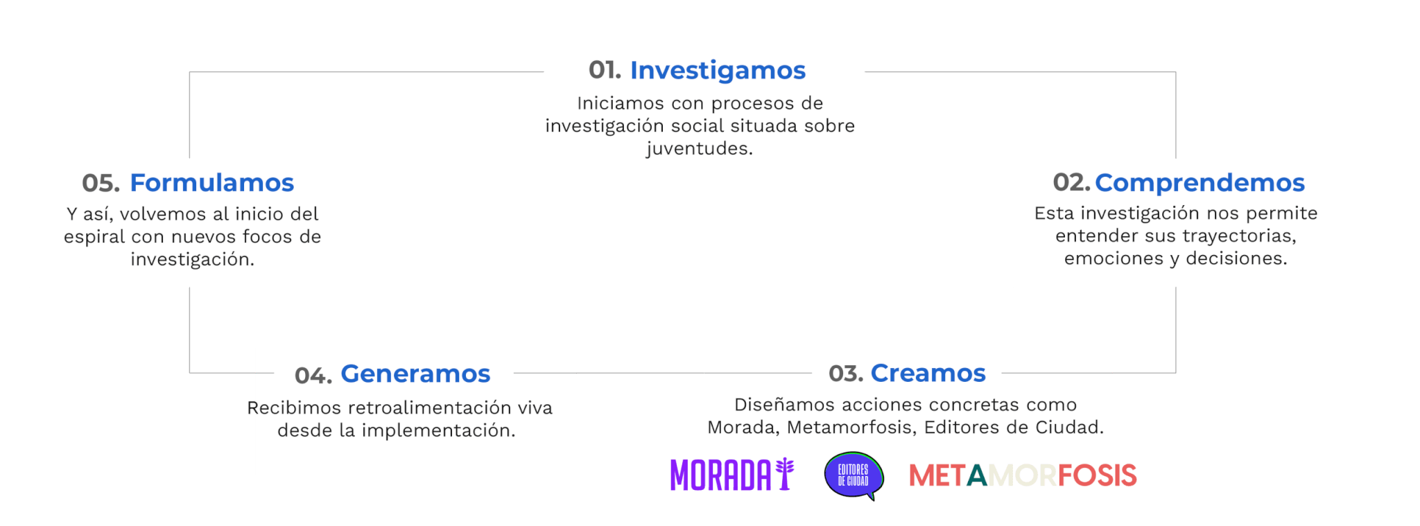 Desarrollamos procesos de investigación que combinan rigor metodológico, ética, trabajo territorial y análisis estratégico, con el objetivo de producir evidencia útil para la toma de decisiones en empresas, gobiernos locales y organizaciones sociales. Nuestra experiencia se centra en jóvenes y adolescentes en contextos de vulnerabilidad, prevención de violencias y fortalecimiento institucional.